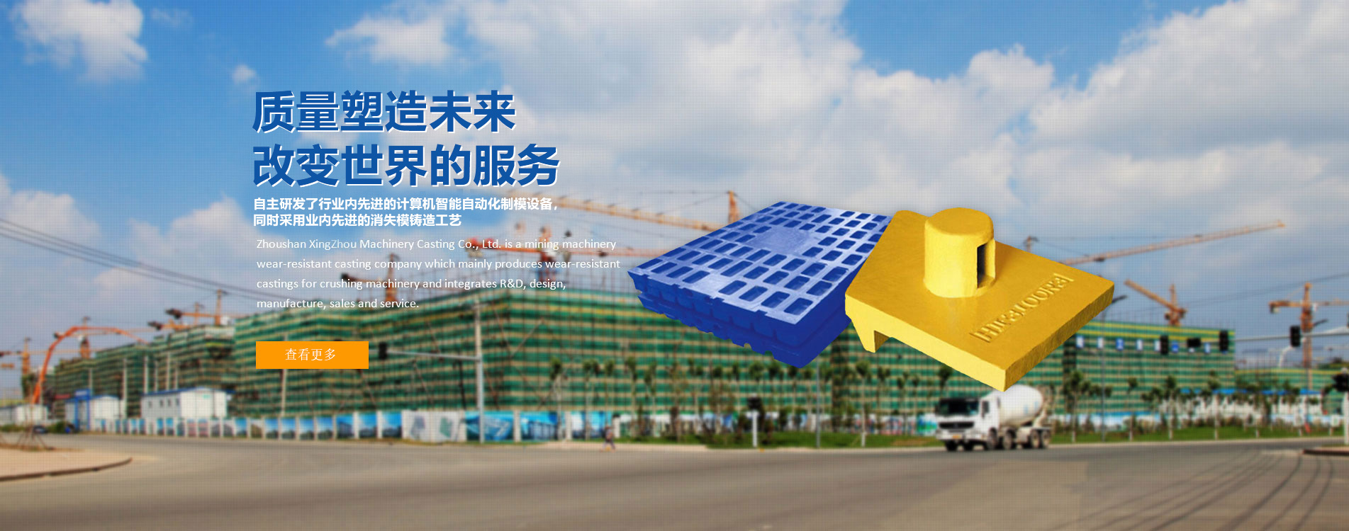 ? ? ? ? ? ? ? ? ?舟山市興舟機械鑄造有限公司成立于2012年4月份,位于舟山市定海區雙橋鎮臨港工業園區,是一家以生產破碎機械耐磨鑄件為主,集研發設計、加工制造、銷售及服務為一體的礦山機械耐磨件鑄造企業。公司位于中國經濟具有活力的以上海為中心的“長三角”地區南翼,地理優勢明顯。